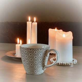 Lysene blafrer forsiktig i det lille trekket ett pust kan gi, og skyggene blander seg med den lette røyken fra nypresset kaffe. Sammen danser de tango over sidene i boken jeg egentlig skulle lese i. Men dansen trollbinder meg og drar meg heller med hit, hit til lysningen av en ny dag. Hit til historien om nuet og der alt annet forsvinner.
